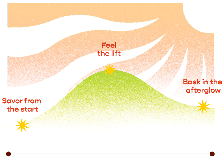 It always starts with flavor. Juicy fruit, bold pairings, lingering effervescence. You feel the effects within 10 to 15 minutes, leading up to the peak Goodmellow feeling: relaxed, bright, connected. After an hour or two, you return to where you started. Bask in the afterglow.